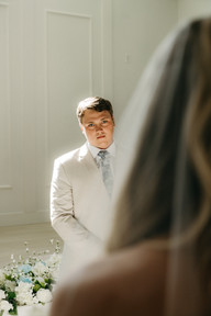 The air inside the estate was warm and still, filled with the low murmur of voices and the faint scent of fresh florals. Cameryn moved gracefully through the bridal suite, a vision in soft white, her hands steady but her eyes full of emotion. Just down the hall, Kendall waited, his tie perfectly knotted, but his mind somewhere else entirely—on her, always on her.